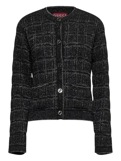 black check pattern ribbed trims long sleeves round neck interlocking-G button placket front pockets