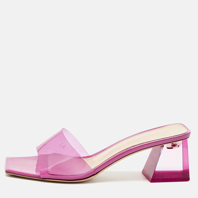 These authentic Gianvito Rossi Cosmic slides feature clear PVC straps over a pink base, creating a barely there illusion. Ideal for summer styling, they’re a unique find for fans of sweet, minimalist designs.