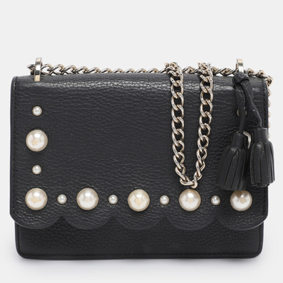 Pearls and structure come together in this charming shoulder bag from Kate Spade. Crafted in black leather with playful embellishments, it’s a nice touch for dressier days.
