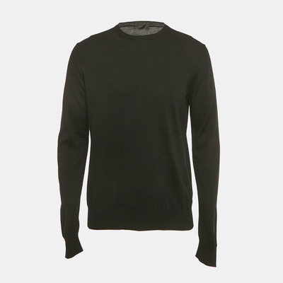 Prada Black Cotton Knit Crewneck Sweatshirt M 1199401 (чёрный, lpn30820708)