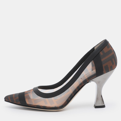 Fendi Brown/Black Zucca Mesh and Leather Colibri Pumps Size 38 1198798 - 1