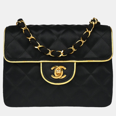 Chanel Classic Square Flap Black Satin Mini Shoulder Bag 1198697 - 1