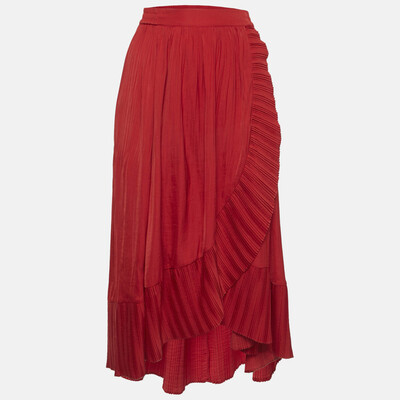 Maje Red Satin Plisse Drape Style Midi Skirt S 1197994 (красный, lpn30821174)