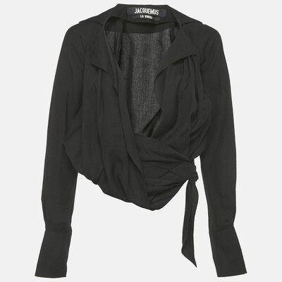 Jacquemus La Riviera Black Tie Detail Wrapped Crop Top S 1198592 (чёрный, lpn30821280)
