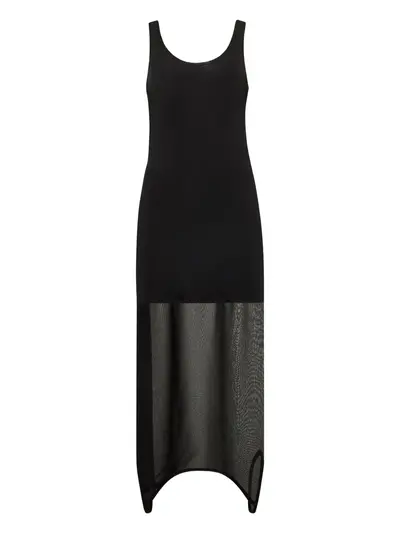 black round neckline wide straps sleeveless asymmetric hem trompe-l'œil effect