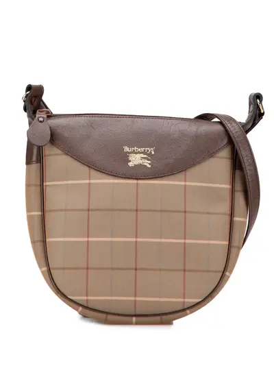 canvas body with leather trim adjustable flat leather strap top zip closure interior zip pocket brown This item has no inclusions. Condition: GOOD. This previously owned and used item is in good condition with minimal signs of use. This may include fading of material or plating and scratches. Please refer to the photos on this product page for a detailed view of the item, including any damages declared.
