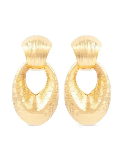1980s gold plated textured surface oval shape post-back fastening door-knocker design