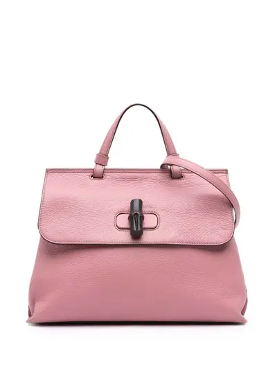 leather body flat top handle detachable flat leather strap front flap with a bamboo bullet twist lock closure interior zip and slip pockets pink Serial Number: 392013 525040 Inclusions: shoulder strap. Condition: GOOD. This previously owned and used item is in good condition with minimal signs of use. This may include fading of material or plating and scratches. Declared Damages: Exterior Side Feature(s) Minor Loose Stitching. Please refer to the photos on this product page for a detailed view of the item, including any damages declared.