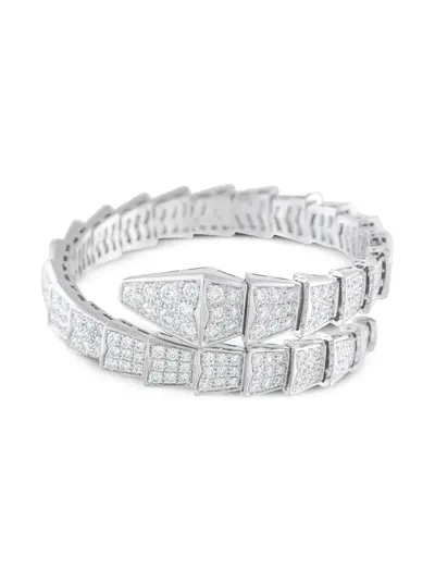 silver-tone 18K white gold diamonds serpent design full-embellished diamonds pave set diamonds round-cut diamonds polished finish Normal everyday use and external agents may reduce the lustre of gemstones and gold surfaces. To maintain, use specific, non-abrasive products specially meant for cleaning jewellery.