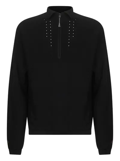 black virgin wool half-zip fastening textured knit long sleeves embellished details