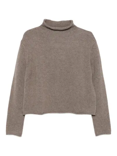 brown turtleneck long sleeves ribbed cuffs cashmere