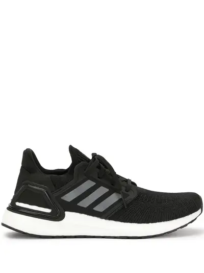 Black Ultraboost 20 sneakers from adidas featuring a round toe, a lace fastening, a flat rubber sole, a logo patch at the tongue, a signature three stripe detail and a branded insole. POSITIVELY CONSCIOUS: Adidas Group scores 4 out 5 by independent ethical brand rating agency Good On You. It uses eco-friendly materials in many products - 100% of its cotton is from sustainable sources and it's committed to use 100% recycled polyester by 2024. It traces and audits almost all of its supply chain to ensure good labour standards, and has committed to reduce carbon and water stress across its whole supplier base.