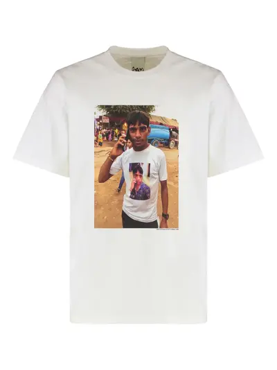 white cotton front print short sleeves
