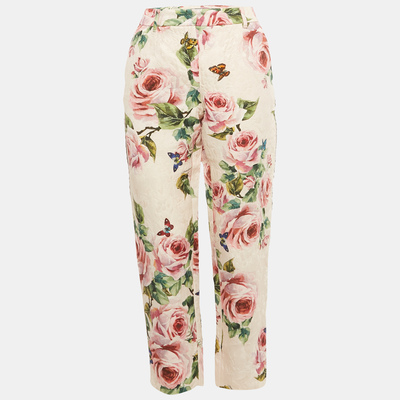Dolce&Gabbana Pink Rose Print Jacquard Trousers M 1201269 - 1