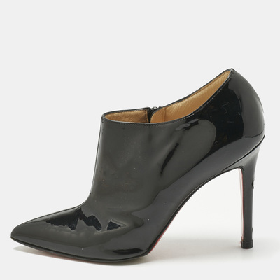 Christian Louboutin Black Patent Leather Ankle Length Boots Size 37 1201278 (чёрный, lpn30831457)