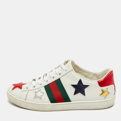 Gucci White Leather and Snakeskin Embossed Ace Lace Up Sneakers Size 36 1201266 - 1 small