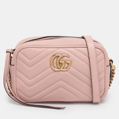 Petite in size but grand in style, this mini shoulder bag from Gucci is crafted in dusty pink leather with stitching. Adorned with the signature GG logo and finished with a strap, it’s the perfect pop of pastel.