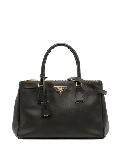 saffiano leather body rolled leather handles detachable flat leather shoulder strap open top with magnetic snap closure double zip compartments interior zip and slip pockets black Inclusions: charm, shoulder strap. Condition: GOOD. This previously owned and used item is in good condition with minimal signs of use. This may include fading of material or plating and scratches. Declared Damages: Interior Pocket Feature(s) Minor Peeling. Please refer to the photos on this product page for a detailed view of the item, including any damages declared.