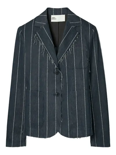Tory Burch pinstripe frayed-edge blazer 31024154 (lpn30832702)