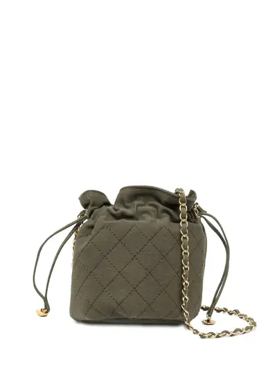 khaki green drawstring fastening open top chain-link shoulder strap logo at the bottom