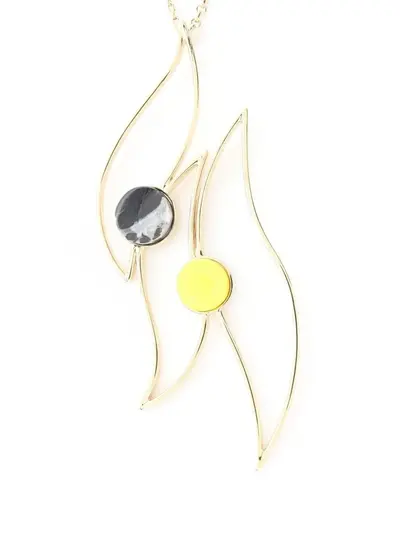 2010s gold-plated black disc yellow disc leaf-shaped frame chain necklace Condition: EXCELLENT. This previously owned item is in near-perfect condition with no signs of damage or use.