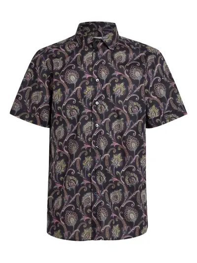 dark-blue paisley pattern short sleeves button fastening point collar all-over print