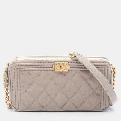A modern icon softened by its muted tone, this Boy Chanel in grained calfskin redefines edge with elegance. Its structured silhouette is both armor and adornment—crafted for the woman who commands a room with subtle power.