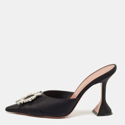 Amina Muaddi Black Satin Begum Mules Size 38 1202572 (чёрный, lpn30838795)