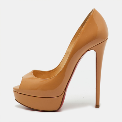 Christian Louboutin Beige Patent Leather Lady Peep Toe Platform Pumps Size 37.5 1202519 (бежевый, lpn30838809)