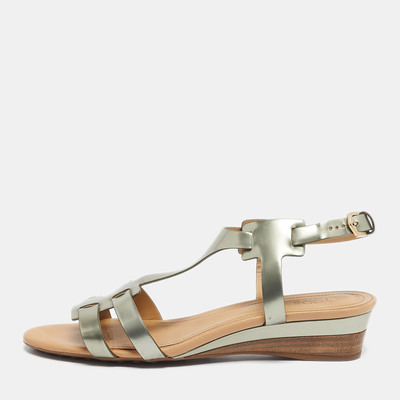 This pair of sandals by Tods exudes sophistication with ease. Feel great and be comfortable while flaunting these low heel sandals that have been crafted using gold patent leather. The open toe pair is complete with buckle closure.