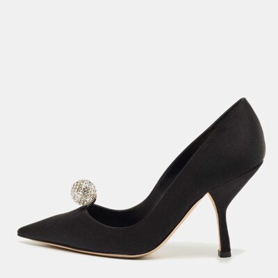 Dior Black Satin Comete Pointed Toe Pumps Size 37.5 1202244 (чёрный, lpn30838987)