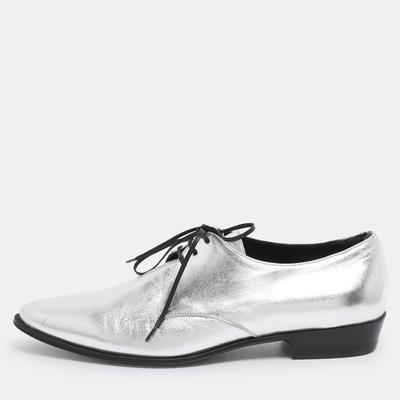 Celine adds a modern twist to classic tailoring with these silver leather lace up derbies. Sleek and versatile, they bring bold sophistication to everyday styling.