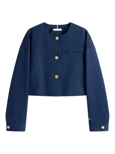 blue cropped length gold-tone buttons welt pocket long sleeves