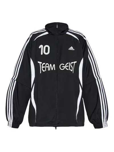 black three white stripes number 10 teamgeist lettering zip fastening high neck