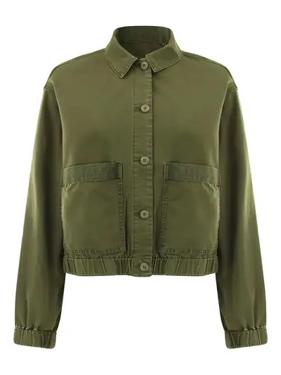green button front patch pockets long sleeves elasticated cuffs