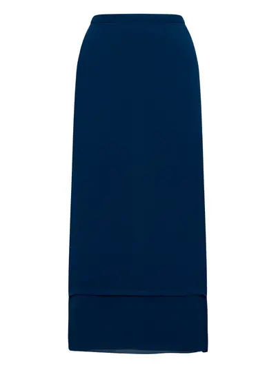 dark blue double layer pleated back zip fastening straight hem layered skirt
