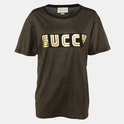 Gucci Black Star Guccy Print Cotton Crew Neck T-Shirt M 1204029 - 1 small