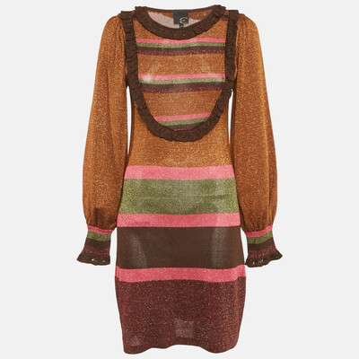 Just Cavalli Metallic Lurex Knit Ruffled Short Dress M 1204018 (lpn30863407)