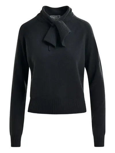 black cashmere pussy-bow detail raglan sleeves ribbed trims