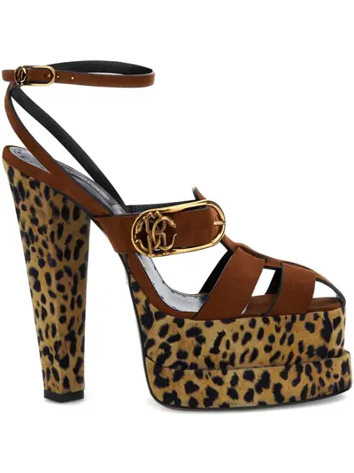 brown leopard print platform sole buckle fastening ankle strap cut-out detailing