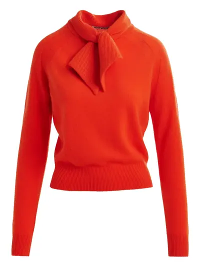 red pussy-bow detail raglan sleeves ribbed trims cashmere