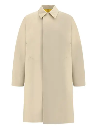 beige cotton polo collar long sleeves welt pockets