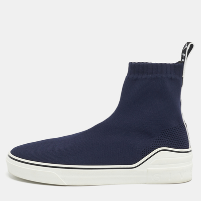Givenchy Navy Blue Knit Fabric George V Sneakers Size 41 1205065 - 1