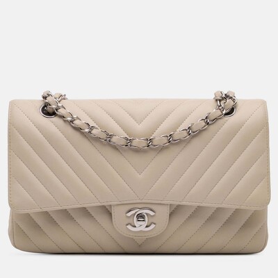 Chanel Classic Double Flap Medium Chevron Lambskin Shoulder Bag 1204795 (бежевый, lpn30868263)