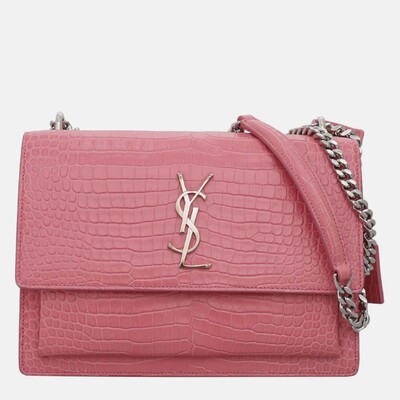 The Sunset bag, reimagined in croco embossed leather, captures the sleek sophistication that defines Saint Laurent. With its structured silhouette and gleaming chain strap, it strikes a perfect balance between classic Parisian elegance and modern edge. The embossed finish adds texture and depth, elevating the design into a statement of quiet luxury. Medium in proportion yet commanding in presence, it embodies the house’s mastery of accessories that are as versatile as they are iconic.