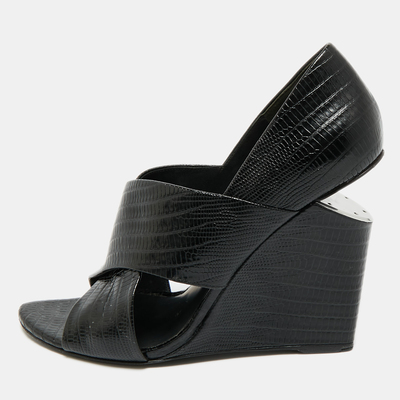 Alexander Wang Black Lizard Embossed Leather Cross Strap Wedge Sandals Size 40 1202544 (чёрный, lpn30868423)