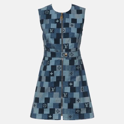 Louis Vuitton reimagines denim with a house signature. This mini dress features the Maison’s monogram woven into a check pattern, combining classic workwear fabric with a fashion forward cut. It captures a confident, everyday style elevated by heritage codes.