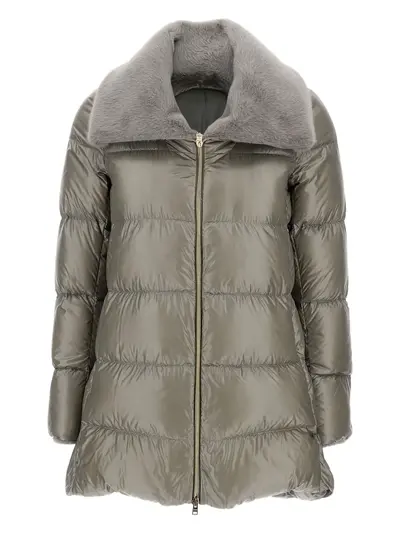 grey quilted design high collar two-way zip fastening long sleeves shearling collar