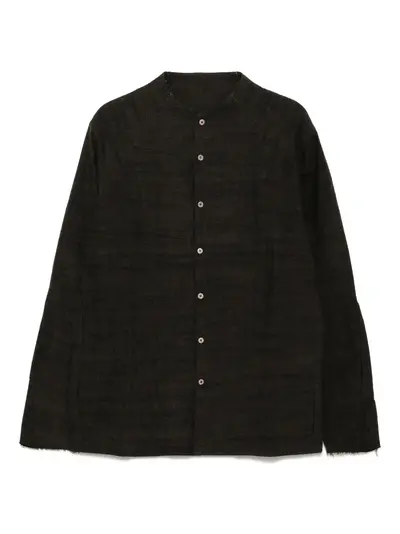 dark brown front button fastening collarless buttoned-cuff sleeves