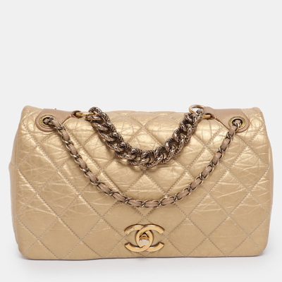 Chanel Gold Quilted Aged Calf Leather Paris-Bombay Pondichery Flap bag 1205819 (lpn30873339)